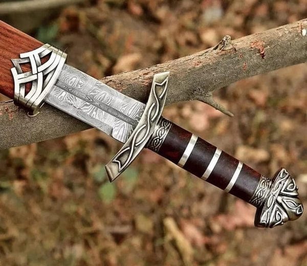 Handmade Damascus Steel Viking Sword: Northman Style, Rose Wood Handle